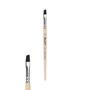 This series of angular shapes is made of synthetic imitation mongoose, designed for use with gouache, oil, acrylic, tempera. The brush has an excellent spring. The special shape provides more precise control during the most delicate work and painting of corner objects, allows you to depict elegant ribbons and beautiful flower petals with only one movement on a circular arm. It can create thin contour lines with its thin edge and at the same time a wide gradient flow with a flat side.