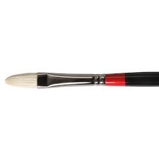 Daler-Rowney Georgian Filbert Brushes Series 12 have extra-fine white Chungking hog bristles for smooth flexible strokes. They have long black handles with a red band, and silver ferrules.