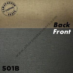 Caravaggio Series 501B Black Primed Artists Canvas is an artist quality polycotton canvas, with a medium grain, 75% cotton & 25% polyester and is 330 GSM / 11.5 Oz thick. The polycotton fabric is double primed with a universal primer, making it ideal for oil, acrylic, tempera & mixed media painting. The medium texture surface is ideal for all techniques with brush & heavier applications with painting knives.