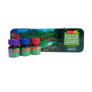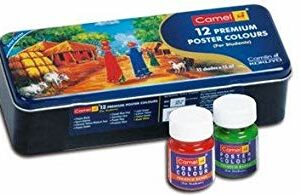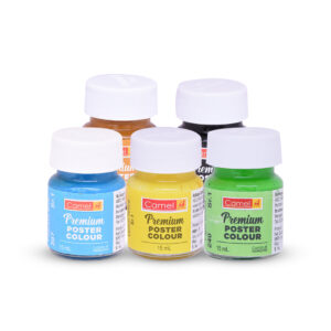 Camel Premium Poster Colours 15ml The premium range of Camel Poster Colours is ideal for a smooth matt finish and a completely opaque mass tone. Made from the finest pigments, they give high covering capacity with a brush or a spray gun. They flow easily, dry quickly and evenly and are easy to mix. Camel Fluorescent Poster Colours give brighter artworks and superior visual impact. These must be carefully used as they as moderately permanent and lose their brilliance on intermixing. Camel Poster Colours are available in 54 shades.