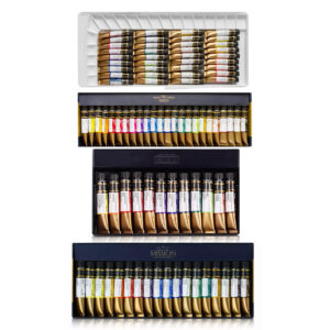 32 Colors Set- This set includes one each 15 ml tube of Crimson Lake, Permanent Rose, Permanent Red, Permanent Yellow Light, Lemon Yellow, Veridian Hue, Cerulean Blue Hue, Prussian Blue, Indigo, Light Red, Burnt Sienna, Yellow Ochre, Sepia, Opera, Vermilion Hue, Olive Green, Hookerās Green, Peacock Blue, Ultramarine Deep, Brown Red, Burnt Umber, Vandyke Brown, Permanent Yellow Orange, Cadmium Yellow Orange, Permanent Yellow Deep, Permanent Green No. 1, Sap Green, Rose Madder, Greenish Yellow, Raw Umber, Cobalt Blue Hue and Permanent Violet.