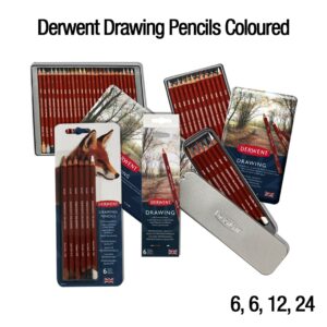 The colour palette of Derwent Drawing Pencils takes you right back to nature. The colours are rich and earthy and you’ll find their soft texture and the pencil’s extra wide colour strip will be a big help when you’re trying to build up dense fur or feathers. We’ve also included a number of Sepia tones in the range which you will find very useful when you come to draw portraits & life studies. So why wait...Get Drawing! Drawing has 24 colours: Light Sienna, Solway Blue, Ink Blue, Smoke Blue, Pale Cedar, Green Shadow, Crag Green, Olive Earth, Warm Earth, Brown Ochre, Wheat, Yellow Ochre, Sepia Red, Mars Orange, Sangiune, Venetian Red, Teracotta, Mars Violet, Ruby Earth, Chocolate, Ivory Black, Warm Grey, Cool Grey and Chinese White.