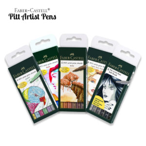 In many countries, ink drawings have a very long history among artists. Their expressive power, covering properties, resistance to ageing as well as the possibility of combining them with many other painting techniques have always made this medium interesting for artists and graphic designers. Faber-Castell has brought together all of the advantages of drawing in Indian ink in a modern and uncomplicated disposable pen ā the PITT artist pen. The high-quality brush point works both straight and bent without breaking. While the light colours are transparent and, thus, well-suited to varnishing techniques, the dark colours have good covering qualities. PITT artist pens have unsurpassed light-fastness and the individual colours are marked with an asterisk-based code.