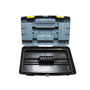 - Tool box with 3 small compartment organizers at the top for smaller storage, and a large interior area for all of your most-used tools