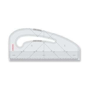 - Made from transparent, orange plastic. The rate of transparency allows to see the drawing medium below template for easy positioning.