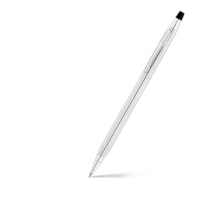 Smart lined detailing and gleaming chrome bring a little retro style to this Cross ballpoint pen. First conceived in 1946, the slimline silhouette of the Classic Century serves to this day as an icon of mid-century modern design. Its unique bi-directional rotation system advances and retracts the writing tip with a simple twist.- Unequalled Cross craftsmanship in a brilliant chrome-plated finish