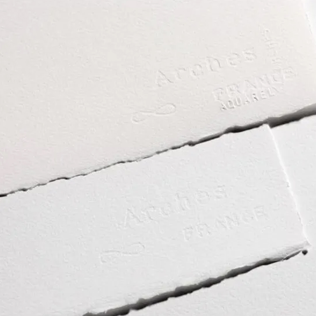 Arches Aquarelle watercolour sheets are made on a cylinder mould, which offers a quality close to handmade papers. The slow turning of the cylinder enables the fibres to be deposited evenly and spread in all directions over the wire. The fibres are distributed evenly, the paper slackens uniformly when wet, giving the artist more control. Only papermaking on a cylinder mould can produce paper with deckle edges. This process can produce papers with a high grammage and exceptional resistance to scratching and erasing.