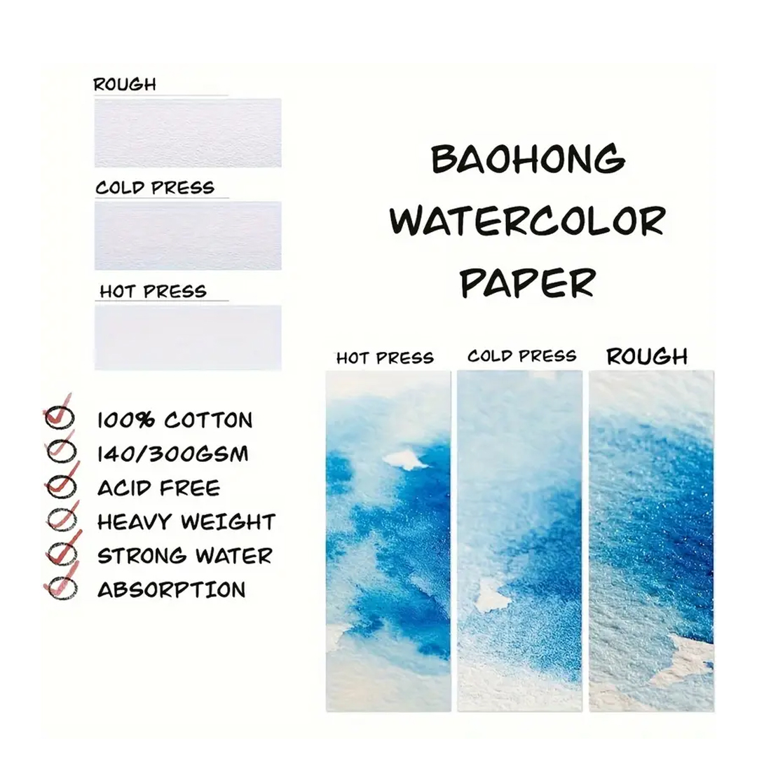 185, 200 et 300 g/m² (cold pressed), 270 g/m² (Snowy grain)