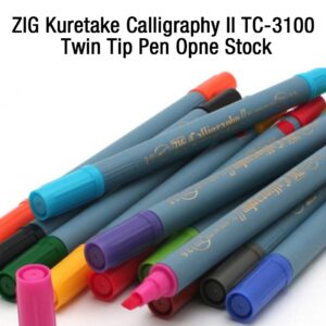 Calligraphy II is dual tipped water-based dye marker, that has extremely vibrant colors. Artworks shown in the insert card were created by Paul Antonio, a professional, UK based Calligrapher. Artist's collection of 24 colors and 2 line widths  TIP SIZE: 2 mm & 3.5 mm Twin tip calligraphy pen with a fine 2.0mm tip in one end and a 3.5mm in the other end. Both nibs is flat-cut calligraphy nibs which makes this pen kind of unique at the market. The ZIG Kuretake Calligraphy II TC-3100 Twin Tip Pen comes filled with water-based dyestuff ink and is available in 24 different colours.