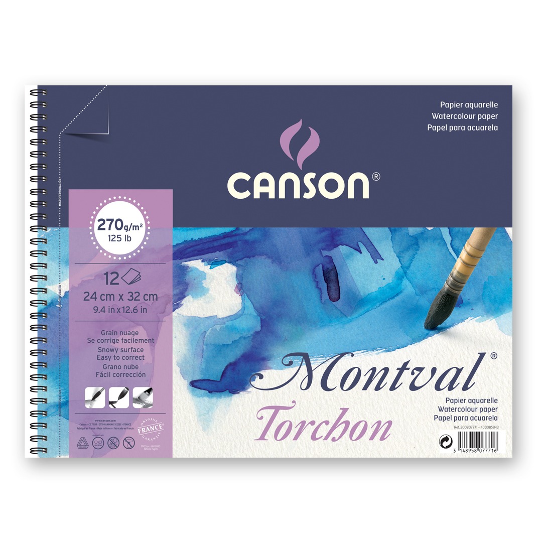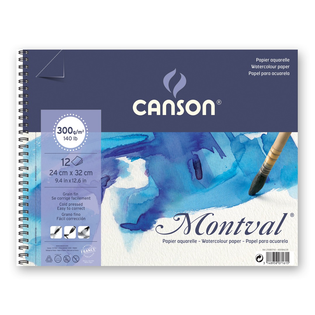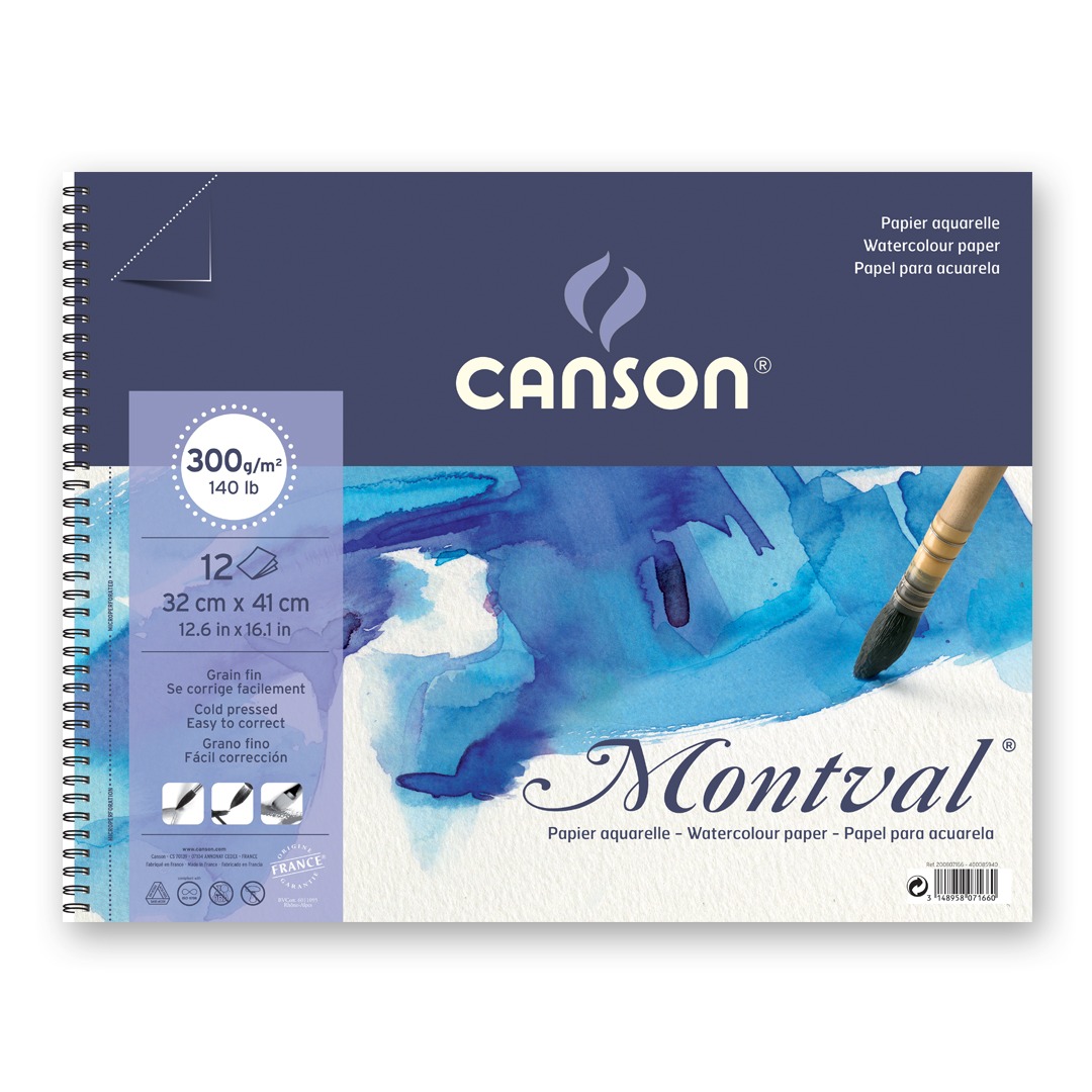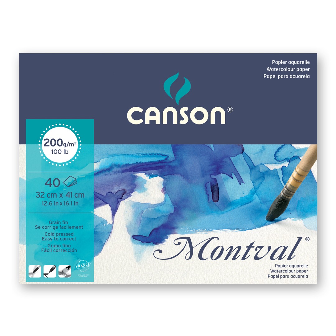 Canson® Montval® was designed by the famous painter Gaspard Maillol in the early 20th century and made on a Foundrinier machine. Canson® Montval® is “THE” paper when it comes to watercolour, however it can also be used with other wet techniques such as gouache or acrylic.