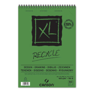 Canson® XL® Recycled withstands erasing and scraping, and will not flake. Its light, finely honeycombed grain, has plenty of scope for material effects. For use with pencil, lead pencil, charcoal, sanguine ink, pen and gouache. This is the paper for environmentally aware artists.
