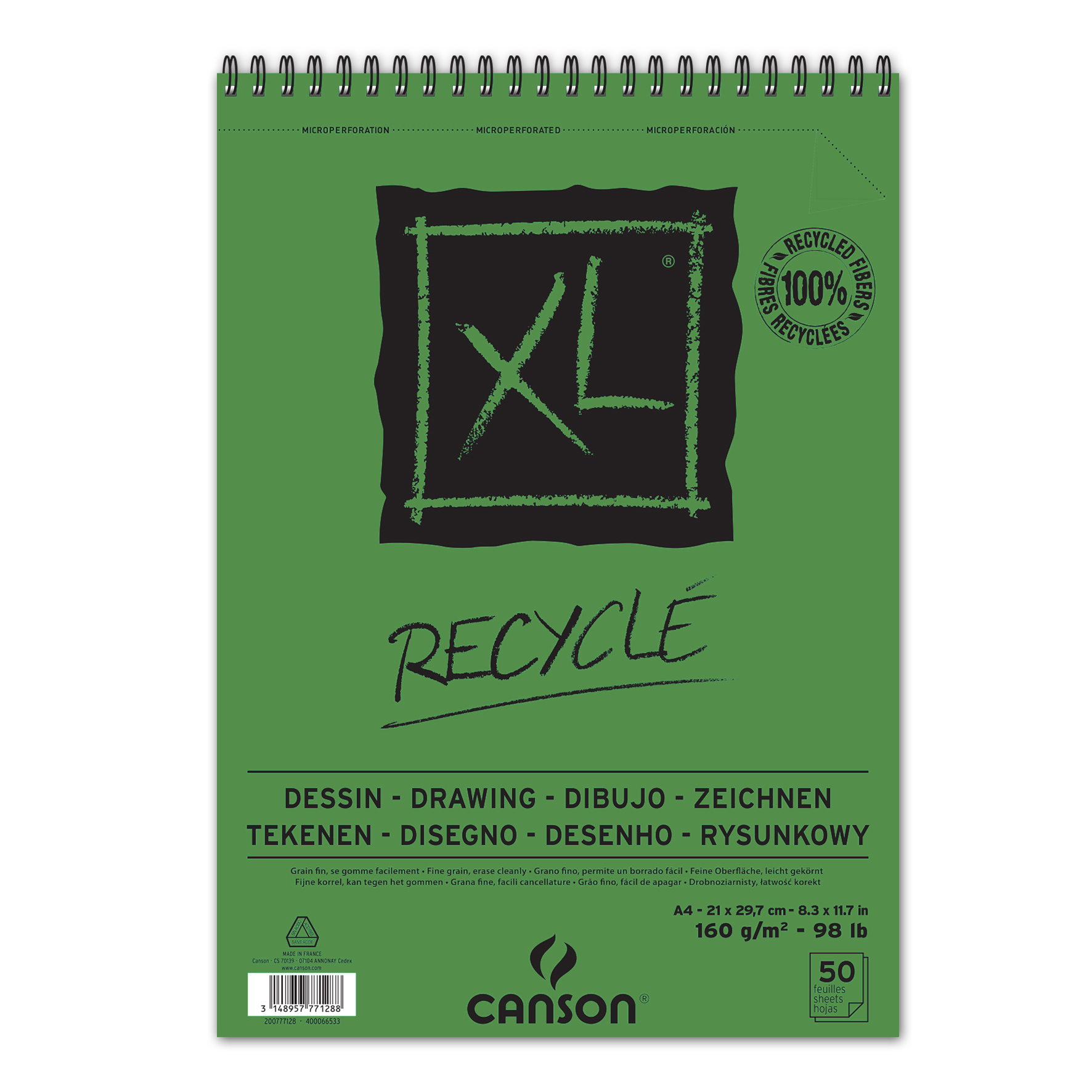 Canson® XL® Recycled withstands erasing and scraping, and will not flake. Its light, finely honeycombed grain, has plenty of scope for material effects. For use with pencil, lead pencil, charcoal, sanguine ink, pen and gouache. This is the paper for environmentally aware artists.