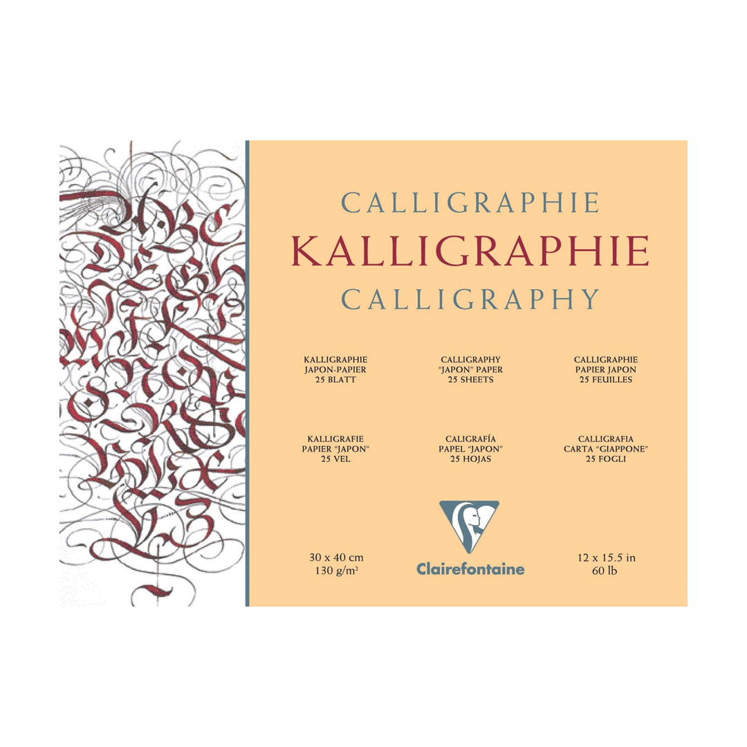 Clairefontaine’s Calligraphy Pad contains 25 sheets of 130 g ‘simili Japon’ paper. This ivory-hued, satin-textured paper is suitable for classical calligraphy with nibs or brushes as well as relief printing or typography. The paper style-simili Japon– was developed by the Schut Mill in the Netherlands during the late 1800s after the Schut family was impressed at how Japanese paper enhanced the performance of writing instruments during a visit.