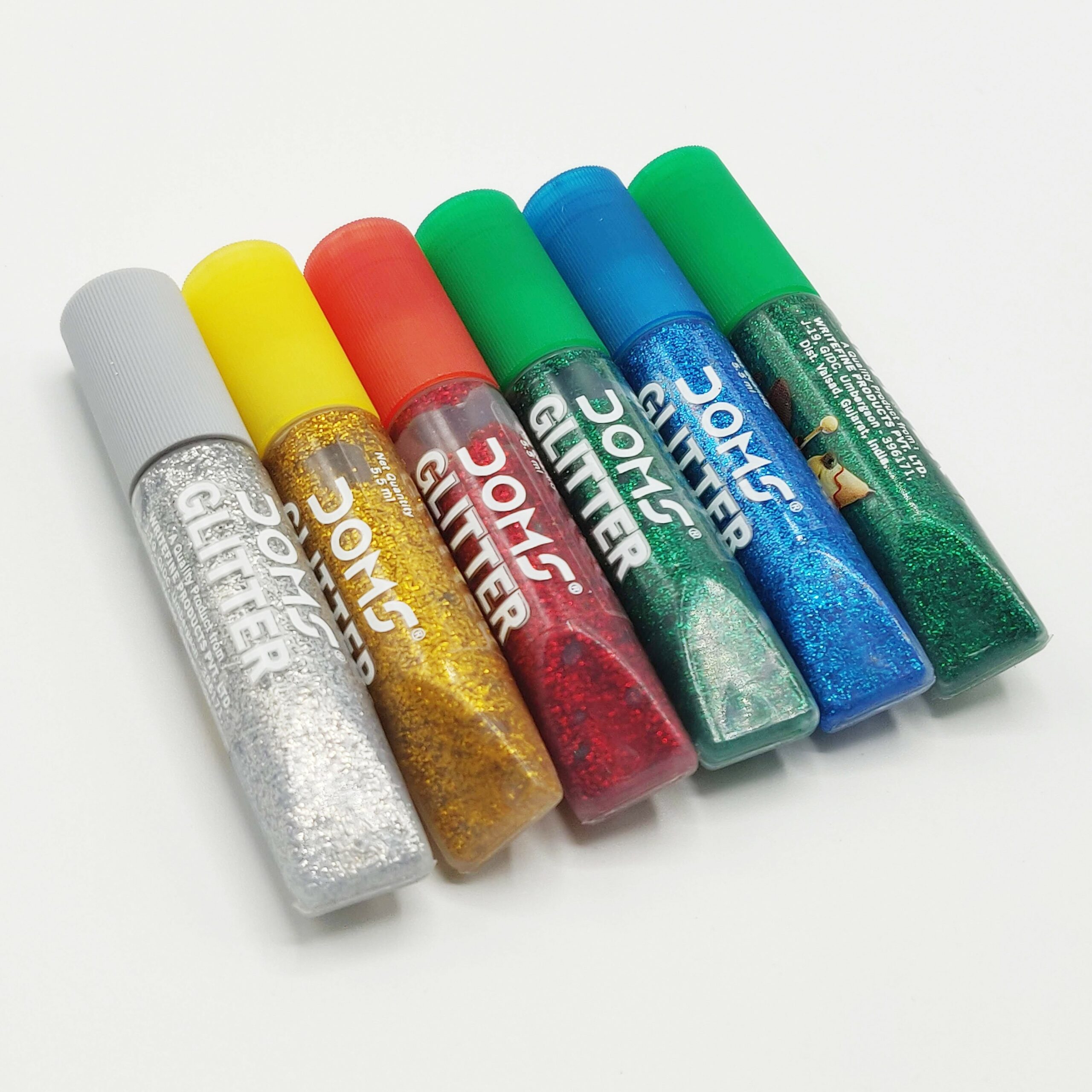 DOMS Glitter Tubes 6 tubes containing glitter glue for children to use for art, craft and card making. With a pen shaped tip for accuracy and an easy to squeeze tube, they are perfect for children to use.