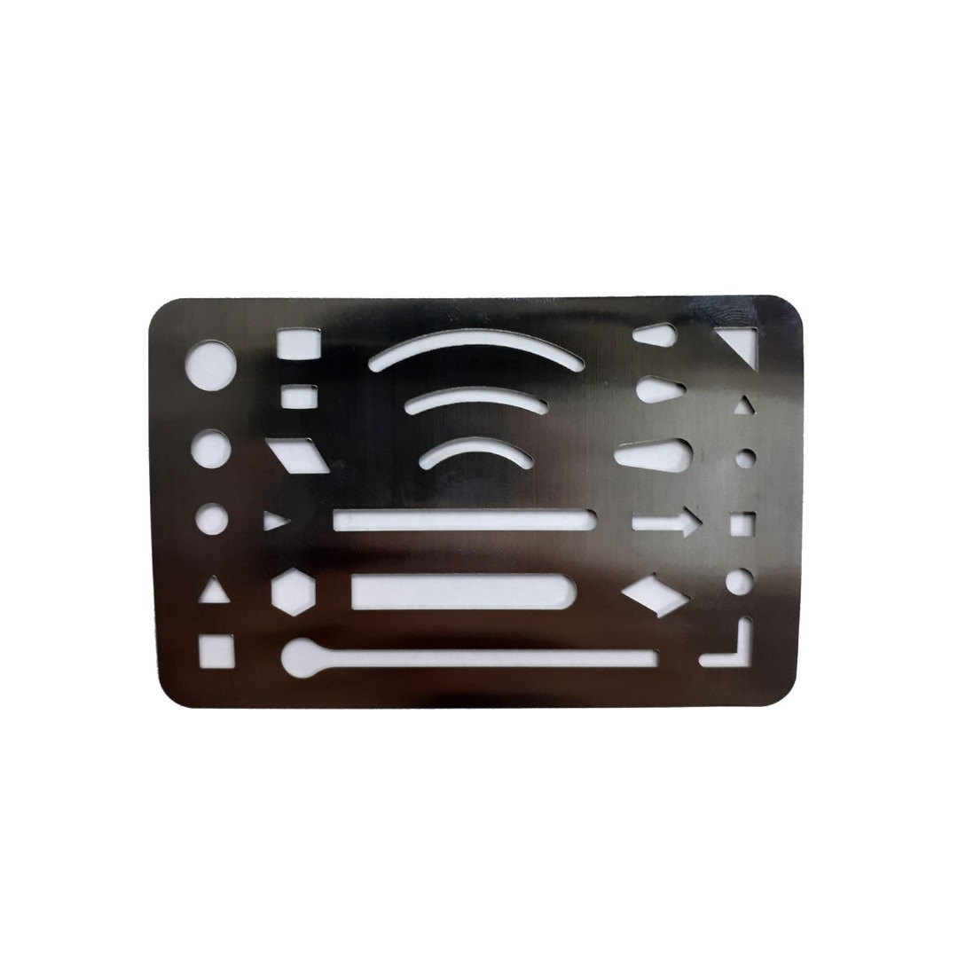 An eraser shield is a thin sheet of stainless steel or plastic with slots and holes of different shapes. They are designed to allow erasers to be used through them to erase lines and text without removing lines close by which do not need to be (or should not be) erased.