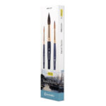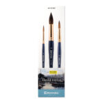 His signature brushes are ideal for all watercolor painters. Each set includes a large synthetic mop brush – Ultimo series size 18 – perfect for laying down large washes, and two round synthetic sable brushes – Prado series sizes 8 and 12 – for all types of details.