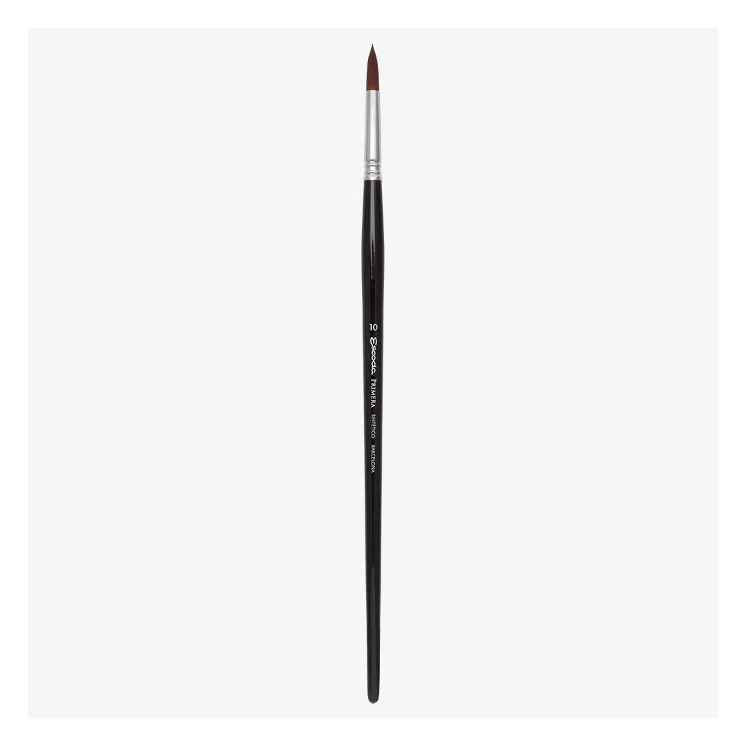 Escoda Primera Teijin is a maroon-colored synthetic with thicker and stiffer fibers for work with heavier bodied paints. Primera Teijin is especially recommended for heavy body acrylics and water mixable oils, because the synthetic fibers will not absorb water and soften with use.