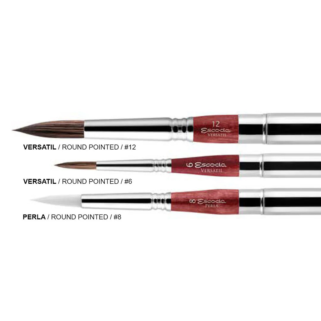 • Sizes of the brushes: Round – 0,1,2,4,5 & 8. Script – 3. Flat Wash – 1/4inches & 1/2inches. Oval Wash – 3/4inches.