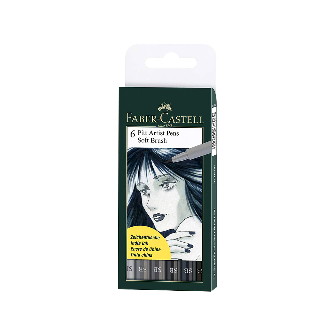Faber-Castell PITT Artist Pens, 6 Pack, Terra, Basic, Pastel, Soft brush, Light Skin Tones,