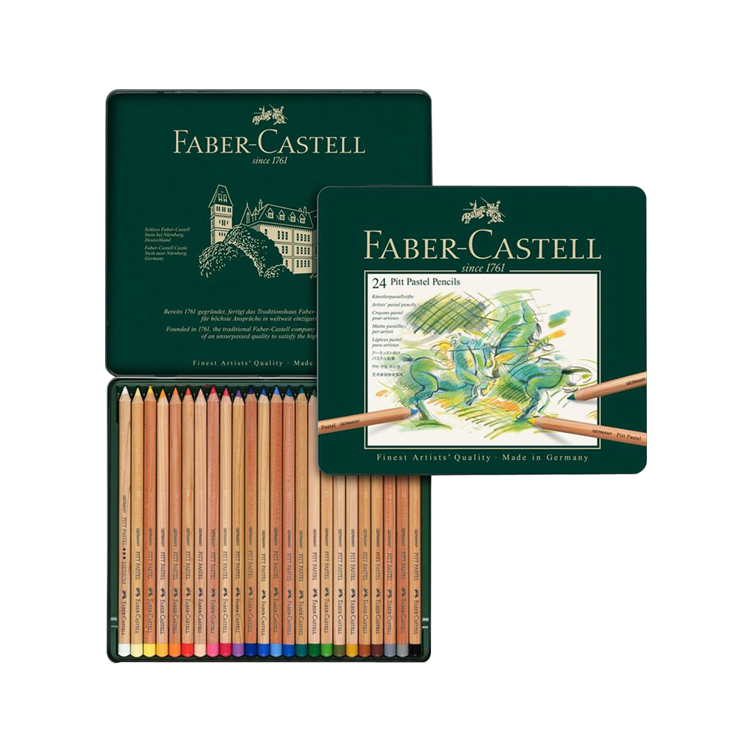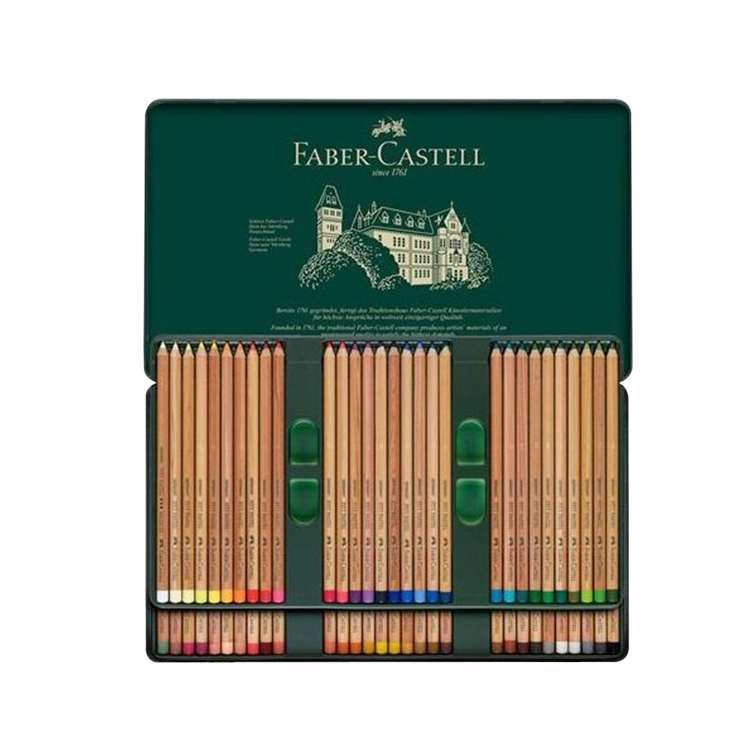 The Pitt pastel pencils contain a high level of pigment, but are wax and oil free, and are perfectly suited for fine details in pastels. Just like the Polychromos pastel crayons they can be easily smudged to create fine colour transitions and perfectly complement the pastel crayons. Only minimal fixing is required, ensuring that the pastel drawings retain their vividness of colour.