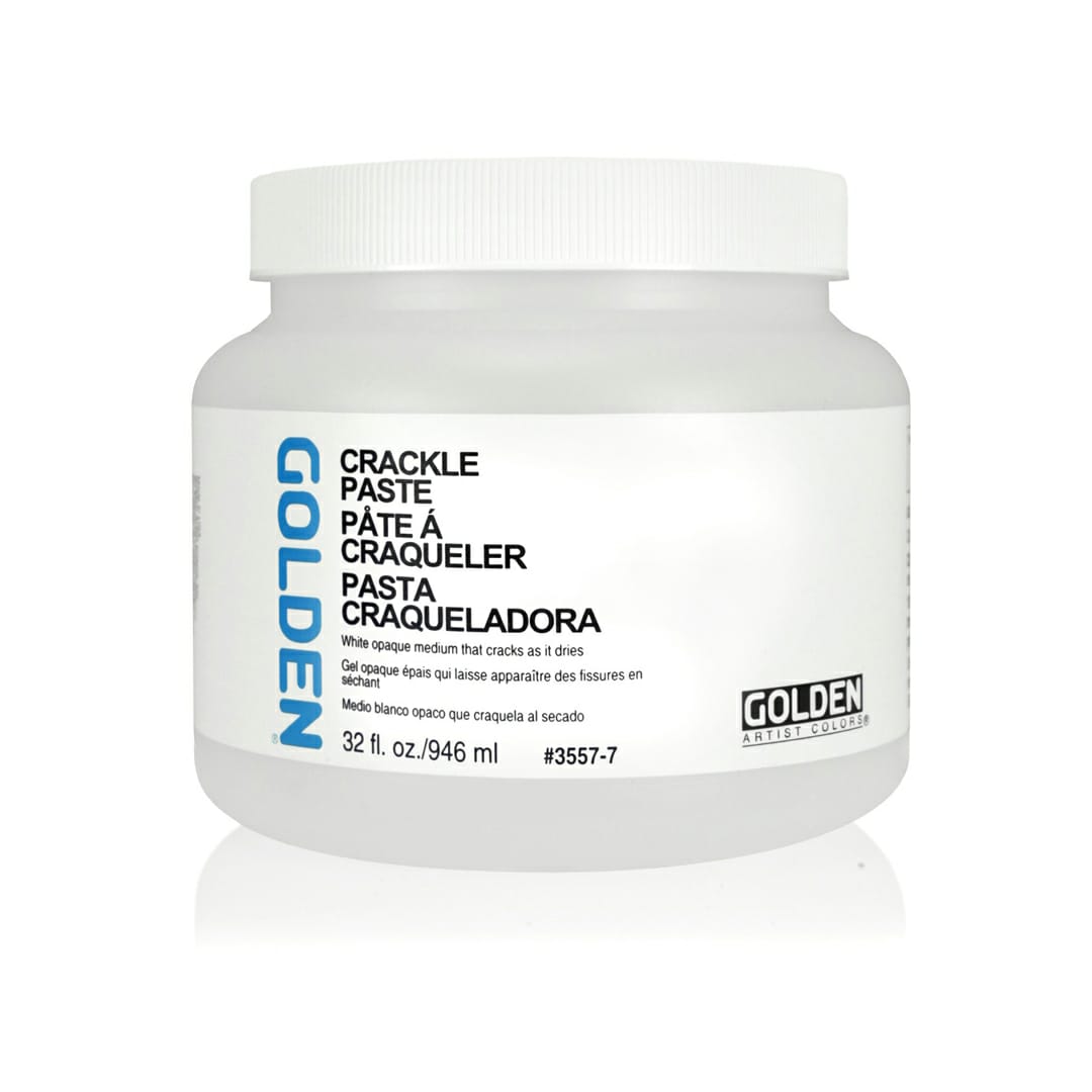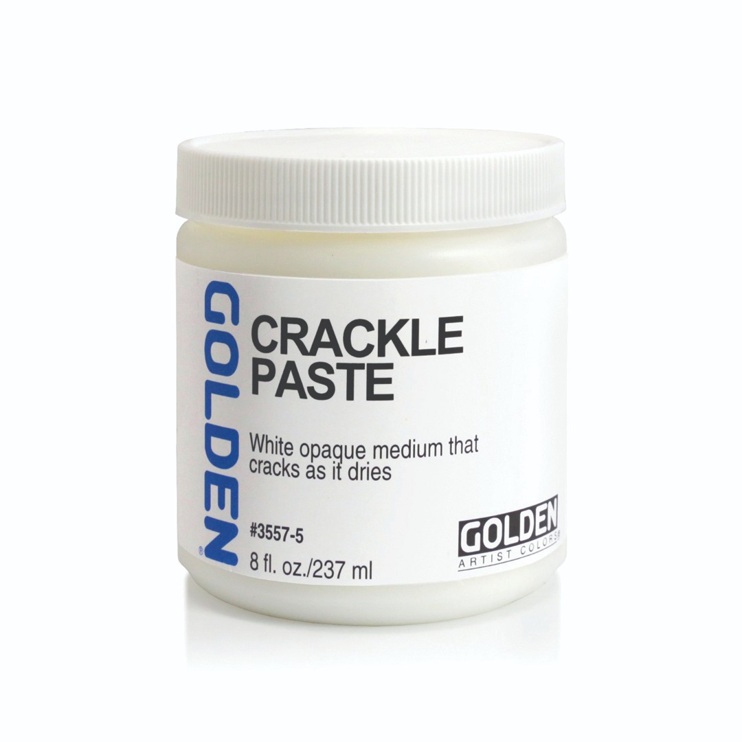 Crackle Paste is a thick, opaque material that cracks as it dries. The size and extent of the cracking pattern depends on the thickness of application, and environmental conditions during drying and other factors. Dries to an opaque, matte finish, with an absorbent surface suitable for acrylic paints and medium. Item no.3557