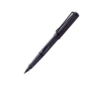 The Lamy 0E2 Safari Steel Black Fountain Pen is a special edition color for 2024!. This fountain pen features a Steel Black high glossy ASA pastel barrel and cap, with a black PVD plated metal trim. The LAMY safari is a workhorse pen, known throughout the fountain pen community for its ruggedness, reliability, and no-nonsense functionality. The triangular grip makes it great for those starting out who have no idea how to hold a fountain pen, but it’s used and loved by fountain pen lovers of all levels of experience. The safari comes with an interchangeable black colour stainless steel nib, which can be easily swapped out for another size. This fountain pen comes with a blue LAMY ink cartridge so you can get started writing right away.