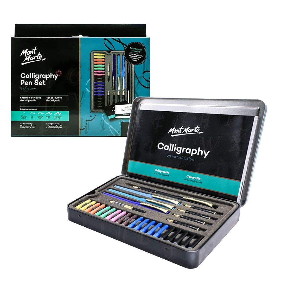 - This Mont Marte Calligraphy Set of 31 pieces provides you with 4 classic style pens, 5 nibs and 20 ink cartridges, 1 ink pen pump and 1 introduction book