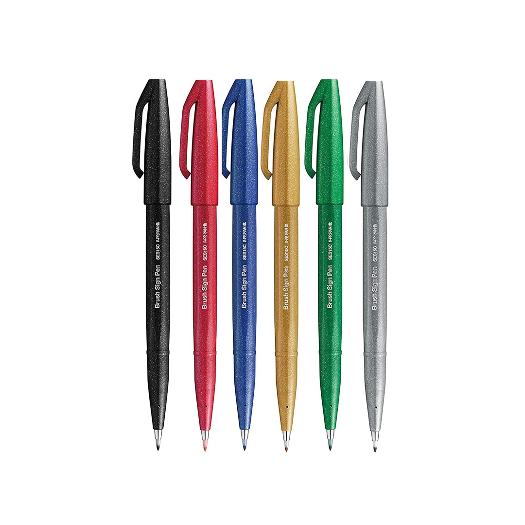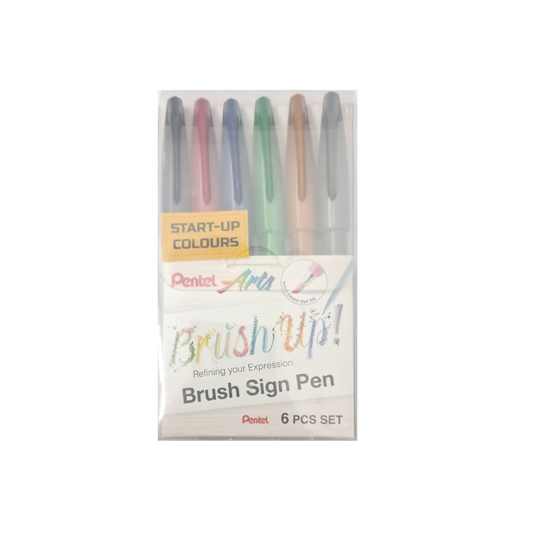 Pentel Brush Sign Pens Set of 6 – (Start-Up Colours)