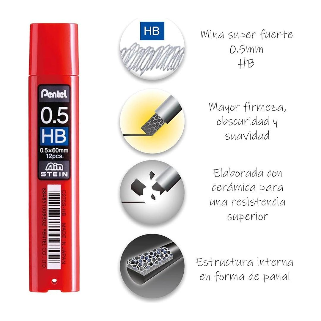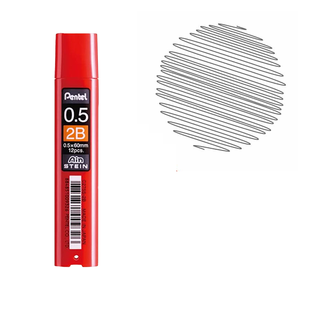 - Experience smooth, precise writing with PENTEL Ain Stein Lead. 0.5 mm thickness and HB and 2B hardness provide strong, clear marks. Perfect for everyday use.