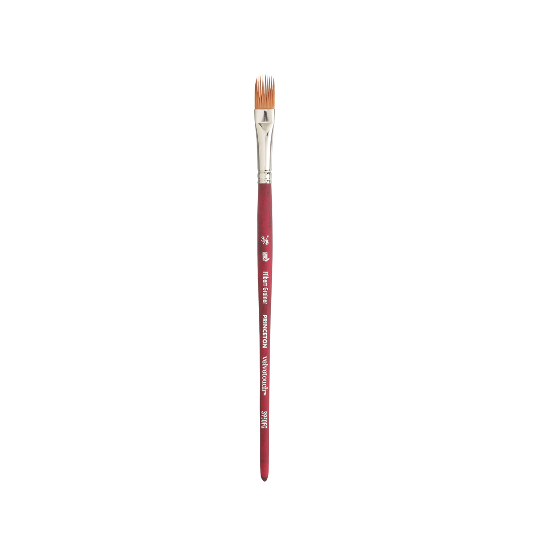 Velvetouch™ is Princeton’s best quality brush for all media including oil, acrylic, watercolor and gouache. The blend of synthetic is unique to each individual shape to enhance performance. Comfort is ensured with our smooth, signature Velvetouch™ handle.
