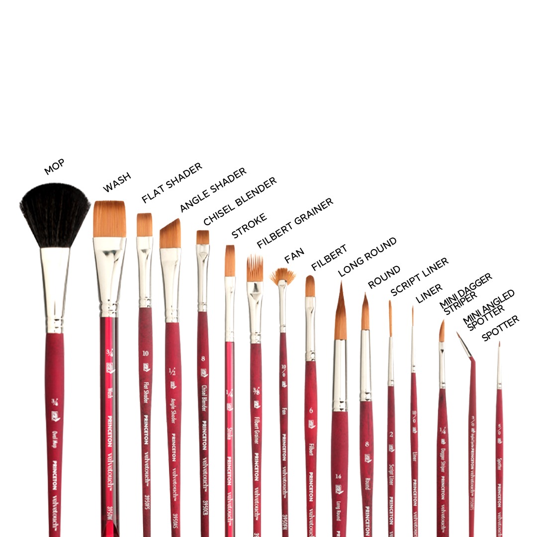 PRINCETON VELVET SYN SH MINI ANG SHADER 1/16IN, PRINCETON VELVETO SYN SH MINI CHISL BLNDR SZ 0, PRINCETON VELVETOUCH BLENDER-1/4IN, PRINCETON VELVETOUCH BLENDER-3/8IN, PRINCETON VELVETOUCH MINI-DAGGER STRIPER-1/4IN, PRINCETON VELVETOUCH MINI-TIGHT SPOT-3/0, PRINCETON VELVETOUCH SYN SH ANG SHADR SZ 1/2IN, PRINCETON VELVETOUCH SYN SH ANG SHADR SZ 1/4IN, PRINCETON VELVETOUCH SYN SH ANG SHADR SZ 1/8IN, PRINCETON VELVETOUCH SYN SH ANG SHADR SZ 3/8IN, PRINCETON VELVETOUCH SYN SH ANG SHADR SZ 5/8IN, PRINCETON VELVETOUCH SYN SH CHISEL BLENDR SZ 2, PRINCETON VELVETOUCH SYN SH CHISEL BLENDR SZ 4, PRINCETON VELVETOUCH SYN SH CHISEL BLENDR SZ 6, PRINCETON VELVETOUCH SYN SH FB GRAINR SZ 3/8IN, PRINCETON VELVETOUCH SYN SH FILBERT SIZE 8, PRINCETON VELVETOUCH SYN SH FLAT SHADER SIZE 4, PRINCETON VELVETOUCH SYN SH FLAT SHADER SIZE 6, PRINCETON VELVETOUCH SYN SH FLAT SHADER SIZE 8, PRINCETON VELVETOUCH SYN SH FLAT SHADER SZ 10, PRINCETON VELVETOUCH SYN SH LONG ROUND SIZE 12, PRINCETON VELVETOUCH SYN SH LONG ROUND SIZE 14, PRINCETON VELVETOUCH SYN SH LONG ROUND SIZE 4, PRINCETON VELVETOUCH SYN SH LONG ROUND SIZE 6, PRINCETON VELVETOUCH SYN SH LONG ROUND SIZE 8, PRINCETON VELVETOUCH SYN SH MINI FILBERT SZ 0, PRINCETON VELVETOUCH SYN SH MINI LINER SIZE 1, PRINCETON VELVETOUCH SYN SH MINI MOP SZ 1/8IN, PRINCETON VELVETOUCH SYN SH MINI ROUND SIZE 0, PRINCETON VELVETOUCH SYN SH MINI ROUND SZ 12/0, PRINCETON VELVETOUCH SYN SH MINI ROUND SZ 20/0, PRINCETON VELVETOUCH SYN SH MINI SPOTR SZ 20/0, PRINCETON VELVETOUCH SYN SH MINI SPOTTR SZ 3/0, PRINCETON VELVETOUCH SYN SH MINIMONGRM SZ 20/0, PRINCETON VELVETOUCH SYN SH OVAL MOP SZ 1/2IN, PRINCETON VELVETOUCH SYN SH OVAL MOP SZ 3/4IN, PRINCETON VELVETOUCH SYN SH PROFESSNAL 4PC SET, PRINCETON VELVETOUCH SYN SH ROUND SIZE 1, PRINCETON VELVETOUCH SYN SH ROUND SIZE 10, PRINCETON VELVETOUCH SYN SH ROUND SIZE 2, PRINCETON VELVETOUCH SYN SH ROUND SIZE 3, PRINCETON VELVETOUCH SYN SH ROUND SIZE 3/0, PRINCETON VELVETOUCH SYN SH ROUND SIZE 4, PRINCETON VELVETOUCH SYN SH ROUND SIZE 5, PRINCETON VELVETOUCH SYN SH ROUND SIZE 6, PRINCETON VELVETOUCH SYN SH ROUND SIZE 8, PRINCETON VELVETOUCH SYN SH SPOTTER SIZE 18/0, PRINCETON VELVETOUCH SYN SH SPOTTER SIZE 5/0, PRINCETON VELVETOUCH SYN SH STROKE SIZE 1/2 IN, PRINCETON VELVETOUCH SYN SH STROKE SIZE 1/4 IN, PRINCETON VELVETOUCH SYN SH WASH SIZE 1 IN, PRINCETON VELVETOUCH SYN SH WASH SIZE 1/2 IN, PRINCETON VELVETOUCH SYN SH WASH SIZE 3/4 IN