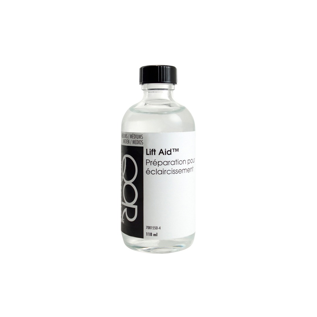 A fluid medium for water color surfaces to improve the lifting of watercolors. Lift Aid may be applied to paper before painting or between washes. (Item # 7001550-4)