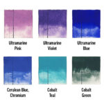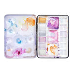 A collection of our favorite granulating QoR colors. Selected for artists who adore this unique watercolor effect. The inclusion of six empty half pans expands the potential even further by allowing the artist space to customize their palette. Set includes: Ultramarine Pink, Ultramarine Violet, Ultramarine Blue, Cerulean Blue Chromium, Cobalt Teal, Cobalt Green and six empty half pans.