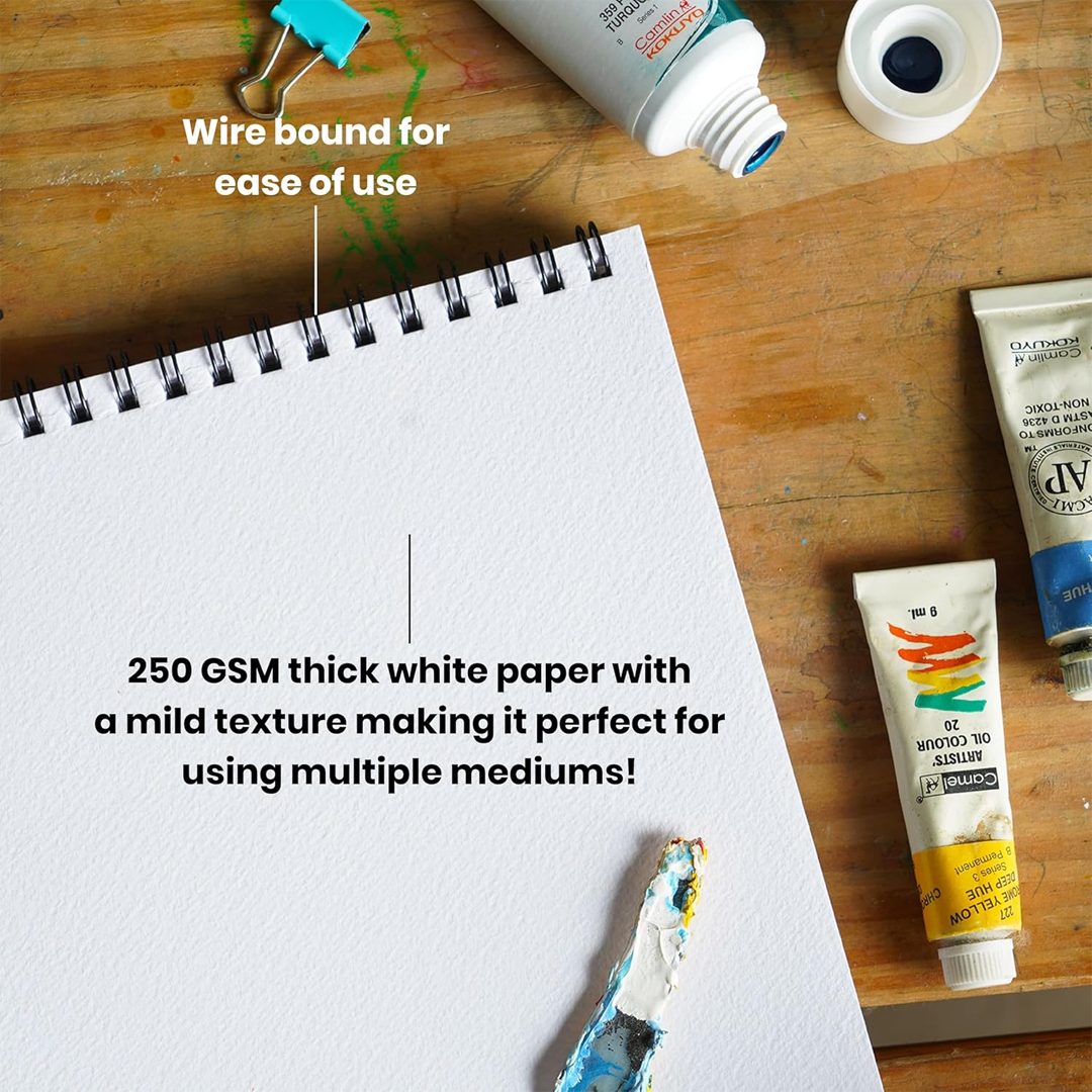 The Scholar Mixed Media Sketchbook Paper is extremely versatile with all art forms and mediums. Ranging from dry mediums like pencil, pastels & charcoal to wet mediums like watercolor & acrylic, our signature mixed media paper performs with brilliant output.