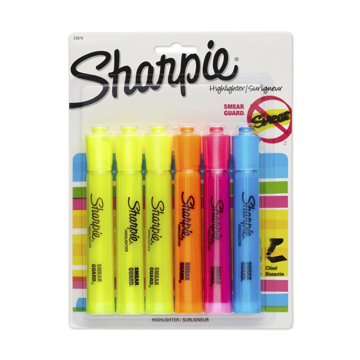 • Includes: 6 Sharpie highlighters in Fluorescent Yellow (x3), Fluorescent Orange (x1), Fluorescent Pink (x1) and Fluorescent Blue (x1)