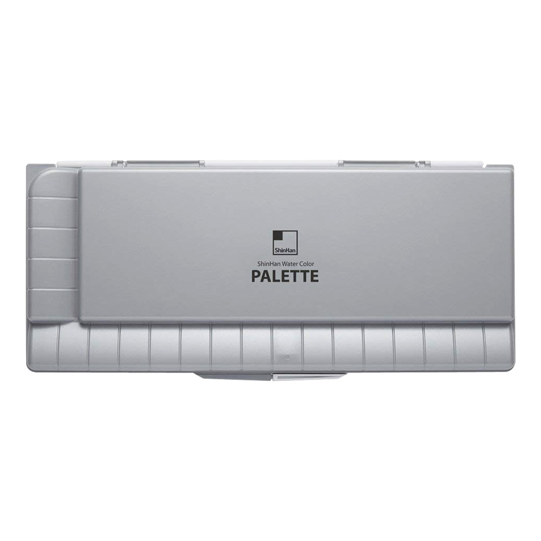The Shinhan 42 slanted well, rectangular, folding watercolour palette is manufactured from High Impact Polystyrene (HIPS). Dimensions (closed) – 15.7 x 36.6x 3.0 cm