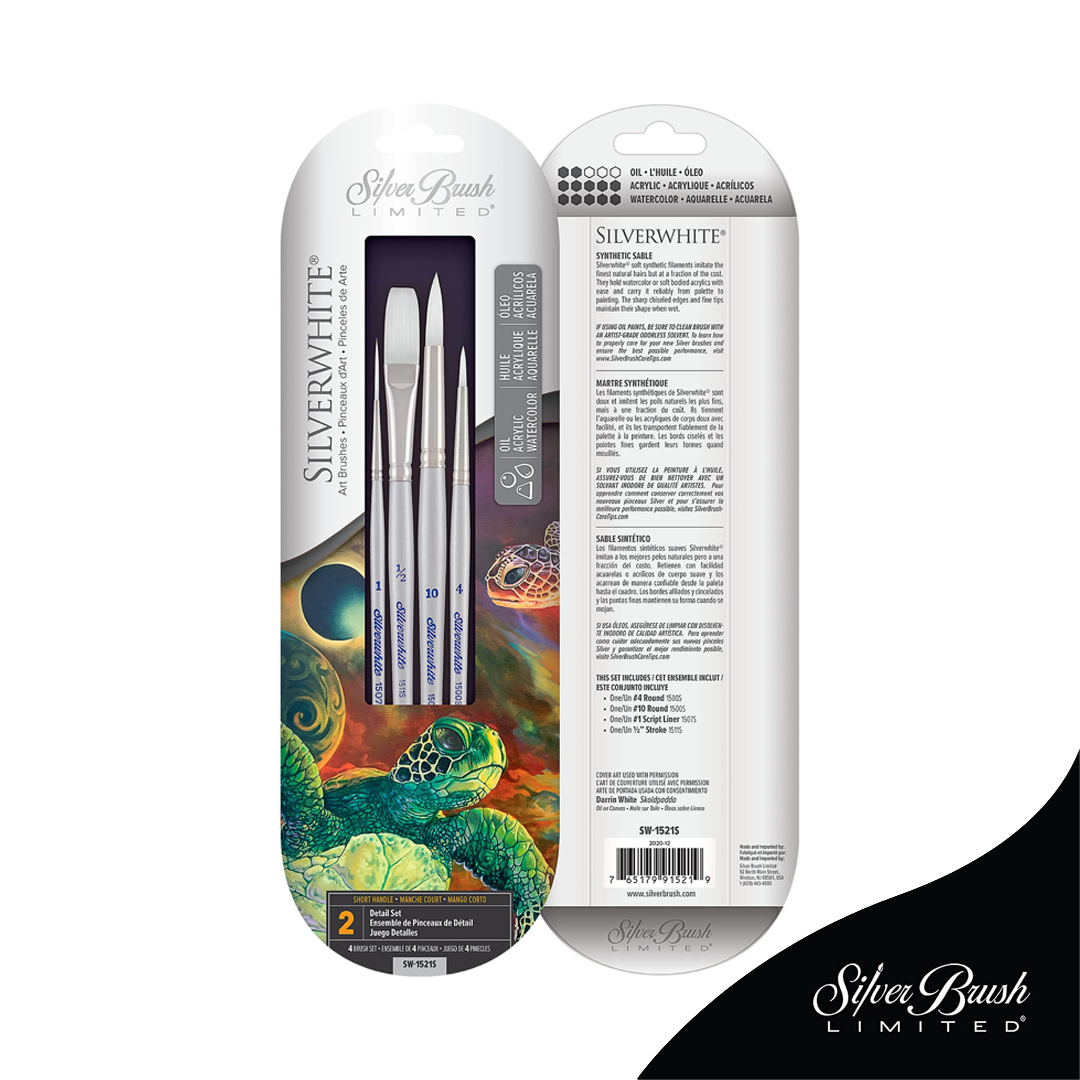 - DETAIL SET: This professional-grade paintbrush set for watercolor, acrylic, gouache, and oil includes 2 round paintbrushes size 4 and 10, 1 script liner size 1, and 1 stroke brush size 1/2 inch. It is the perfect set to create fine lines, glazing, backgrounds, and broad strokes. The short handle is ideal for tabletop painting.