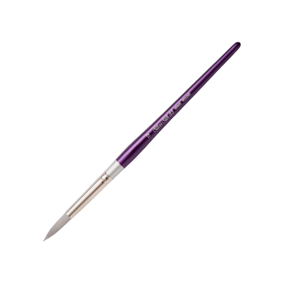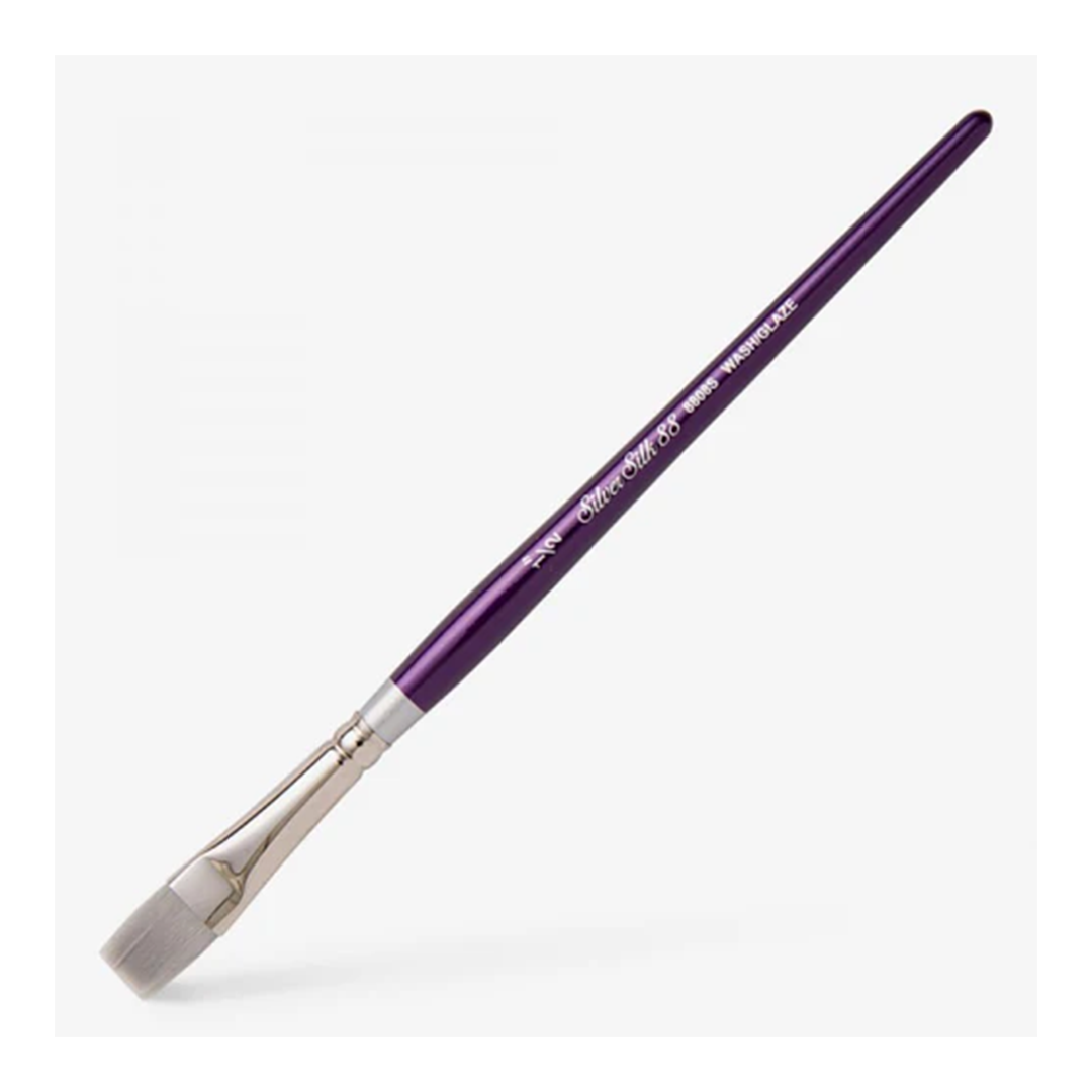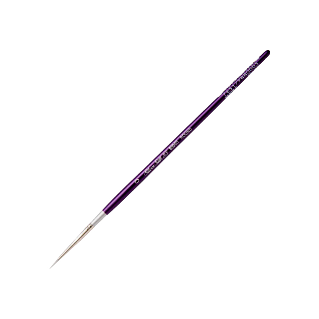 Silver Silk 88™ by Silver Brush is the best quality synthetic brush on the market for use in fluid acrylics, interference acrylics, gouache, watercolors, and more. These brushes have great absorbency, exceptional holding capacity, wonderful color control, and excellent wear resistance.