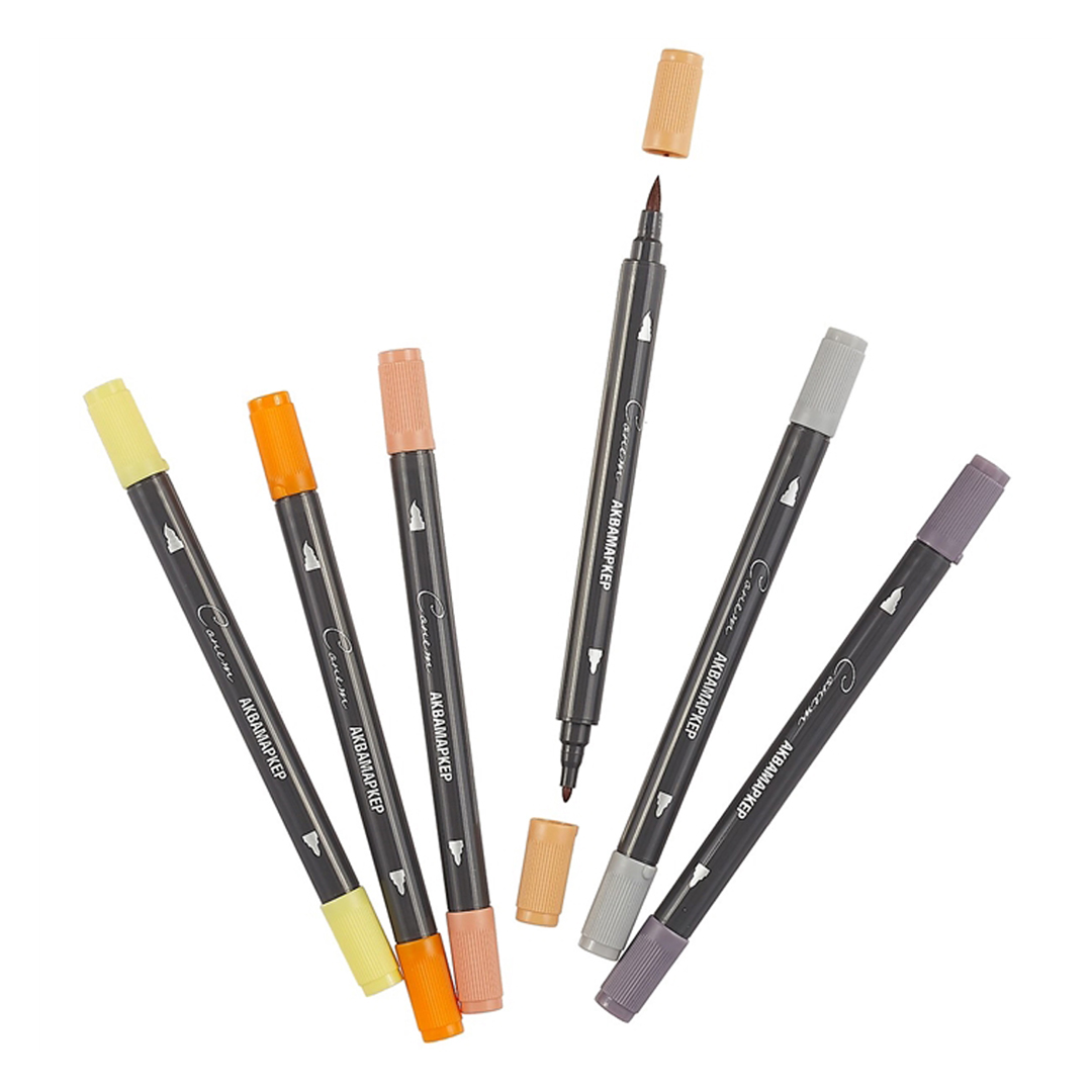 Water-soluble light fast aqua markers are intended for painting, drawing & mixed media techniques. They perfectly combine the properties of watercolors and markers. They have bright and rich colors that mix well with each other. The flexible brush tip is good for painting, and the small bullet for small details.
