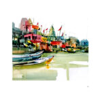 Varanasi… The city of temples. The most ancient and most sacred city in India. The Ganga which washes away all one’s sins is an inseparable part of the culture of Varanasi. The city had been beckoning me for a long time. I longed to paint the temples and the ghats of the Ganga. The first impression of the maze of crisscrossing narrow lanes and the closely-knit houses was somewhat claustrophobic but mysterious, which roused my curiosity. But when I opened the window of my hotel room, the Ganga stretched to infinity in front of my eyes….