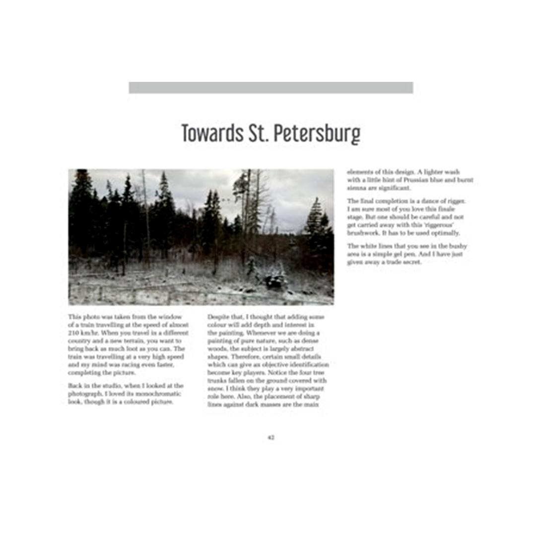 Through easy-to-understand chapters - Wash, Wet-in-Wet, Glazing, Brushwork, Subtraction, Direct Approach, Outdoors and assignments he leads the budding watercolourist along the way to becoming a serious painter while enjoying the process.