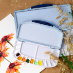 All paints in this series consist of two to three pigments that have different particle sizes and specific gravity. These colours fascinate by the movement of pigments in water. Most interestingly they show their extraordinary character in wet work, when a large amount of water on the sheet allows pigment particles to move unhindered. The effects of pigment lamination appear some time after the application of strokes and are best seen in dried work. In the paints there are included also special additives that stabilize the movement of pigment particles in the mixtures. The granulating paints have noble complex colours and will enrich classical painting with the original effects of granulation and lamination of pigments, inspire the creation of abstract compositions with unusual technical solutions. The nature of the effects for granulating series significantly depends on the type of paper: the use of watercolour paper with a pronounced texture (Fin and Torchon) will increase the granulation effect.