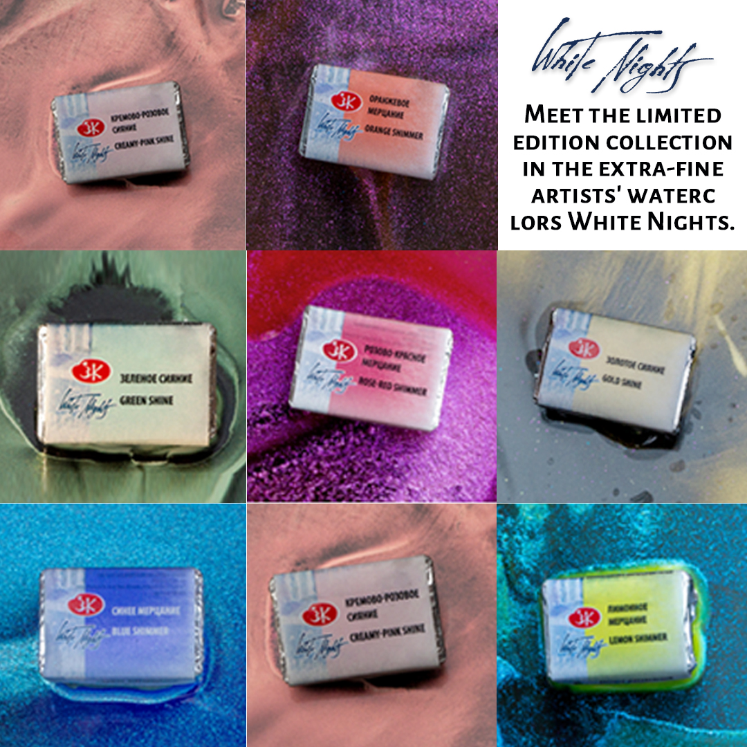 Contains: Zinc White*** or Titanium White***, Cadmium Lemon (Hue)**, Cadmium Yellow Light (Hue)**, Cadmium Yellow Medium (Hue)**, Cadmium Red Light (Hue)** or Cadmium Red Deep (Hue)**, Red Ochre*** or English Red*** or Indian Red ***, Cobalt Blue Medium (Hue)** or Phthalocyanine Blue** or Cobalt Blue Light (Hue)**, Ultramarine Light**, Cobalt Green Deep (Hue)** or Cobalt Green light (Hue)**, Viridian* or Phthalocyanine Green**, Raw Sienna***, Ochre light*** or Gold Ochre***, Raw Umber "Leningrad"*** or Burnt Umber*** or Burnt Sienna***, Lamp Black** or Shungite
