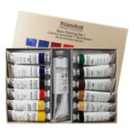 Artists' acrylic colours sets, 8x18 ml tubes, 12x18 ml tubes, 10x46 ml tubes cardboard box